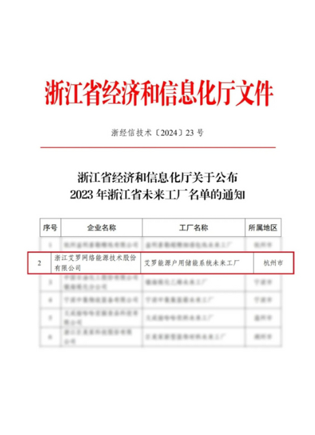 2024:“PA旗舰厅能源户用储能系统”上榜浙江省未来工厂